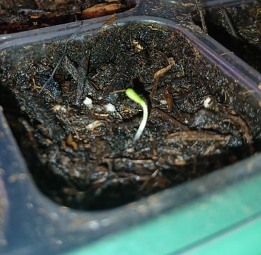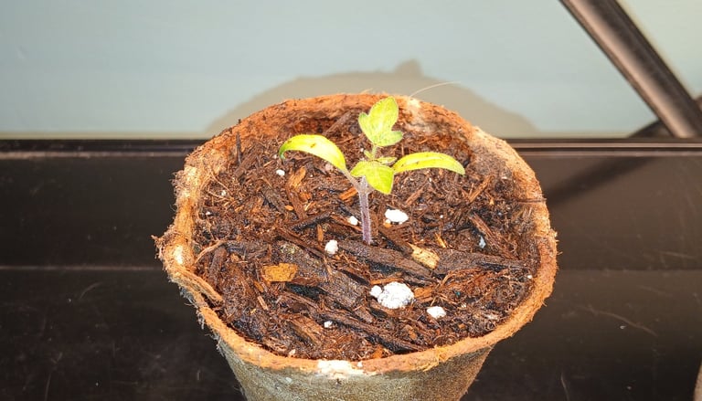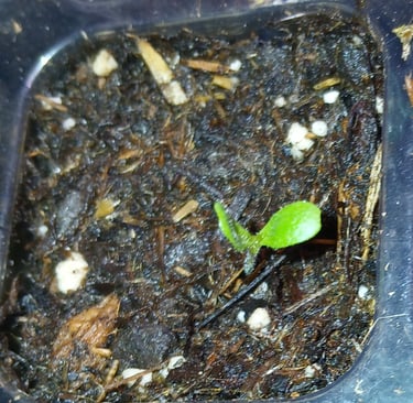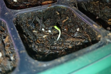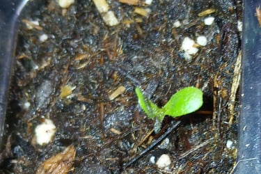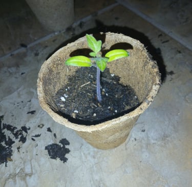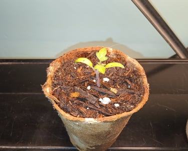 Of all the things I plant peppers take the longest to sprout but they usually emerge within a week. Once plants sprout they stay in the seed tray with the grow lights on about 12-14 hours a day, watering when needed, until they start getting their true leaves. A plants true leaves are the second set of leaves appearing after the initial seed leaves. They resemble the leaves the plant will have when matured. Once the plants get at least 2 true leaves, usually within a couple weeks, I will then transplant each cell into its own small pot. Do this carefully you don't want to destroy the root system. I usually use a small digger tool that came with my seed tray kit to remove the plant from its cell. When transplanting peppers or tomatoes, I plant them deeper in the soil to encourage stronger root systems.